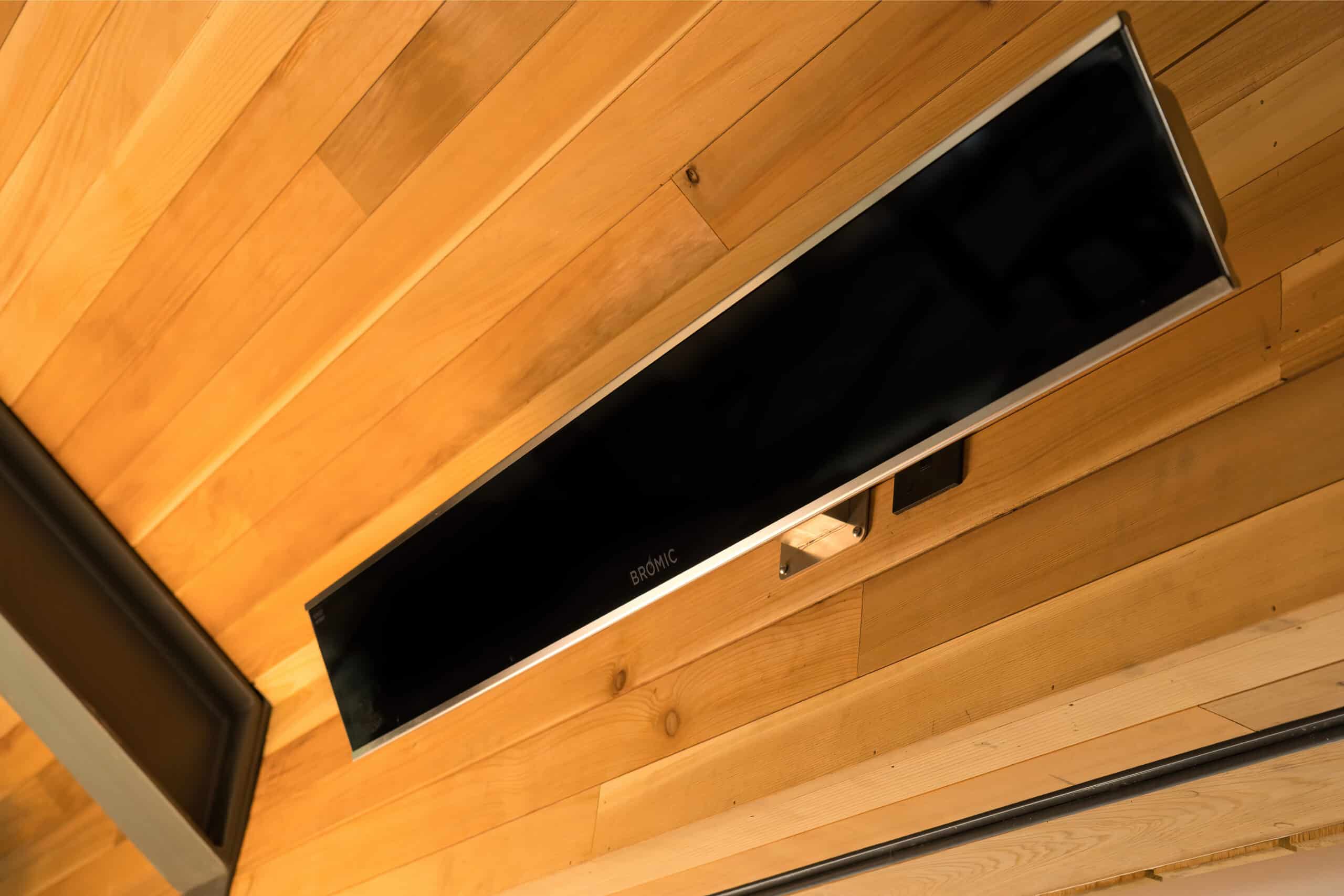 “We used to have open element style heaters before which look ugly, tend to rust, and get covered in cobwebs,” says Peters. “We wanted to be able to utilize the space year-round and use the heaters when the weather gets cooler.” The recommended black Bromic Platinum heaters were the perfect heating solution for this project, bringing dimension to the building, while giving the proper heat coverage to keep the space warm for the typical Southern England climate.