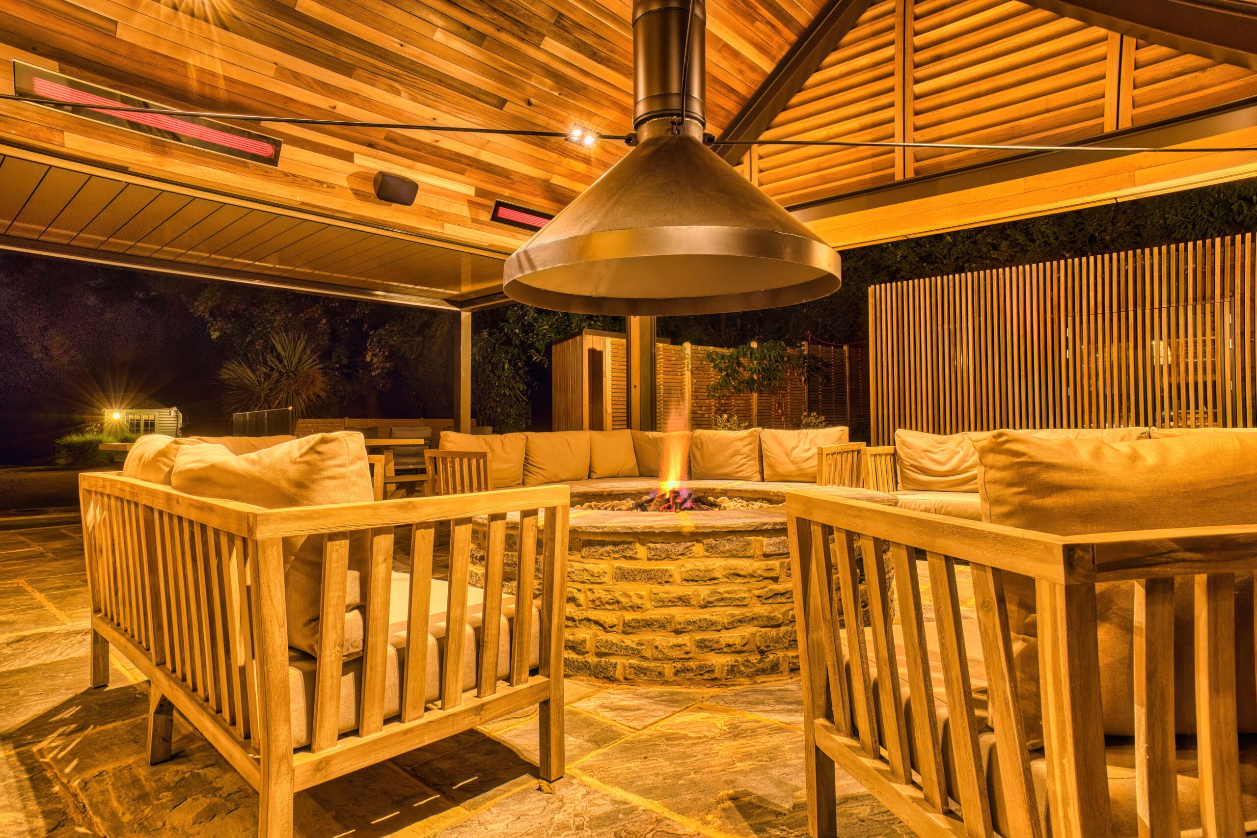 Taking into consideration the typical Southern England climate and the new structure where the heaters were to be installed, a barn conversion where they would be fully protected from the elements, twelve Platinum 3400W Electric heaters were recommended as the most effective heating solution for this outdoor living area. In addition, a Wireless Dimmer Controller as well as a Master Remote were recommended to allow for dimmability of heat output and zoned coverage within the space for complete comfort control.